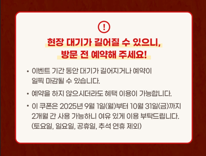 쿠폰사용기간이 9월 1일~10월 31일까지라서 기간적으로는 여유가 있습니다