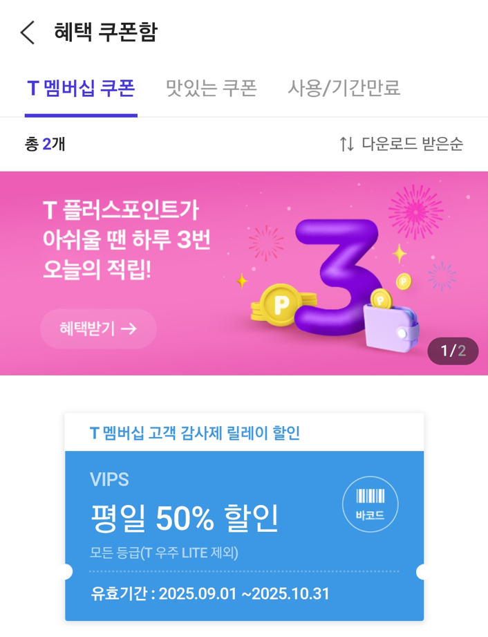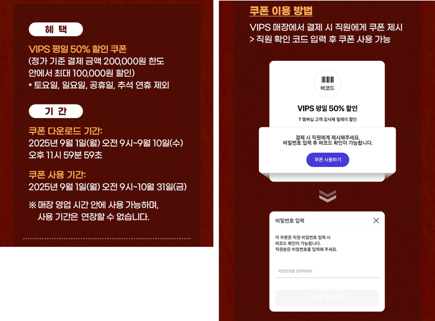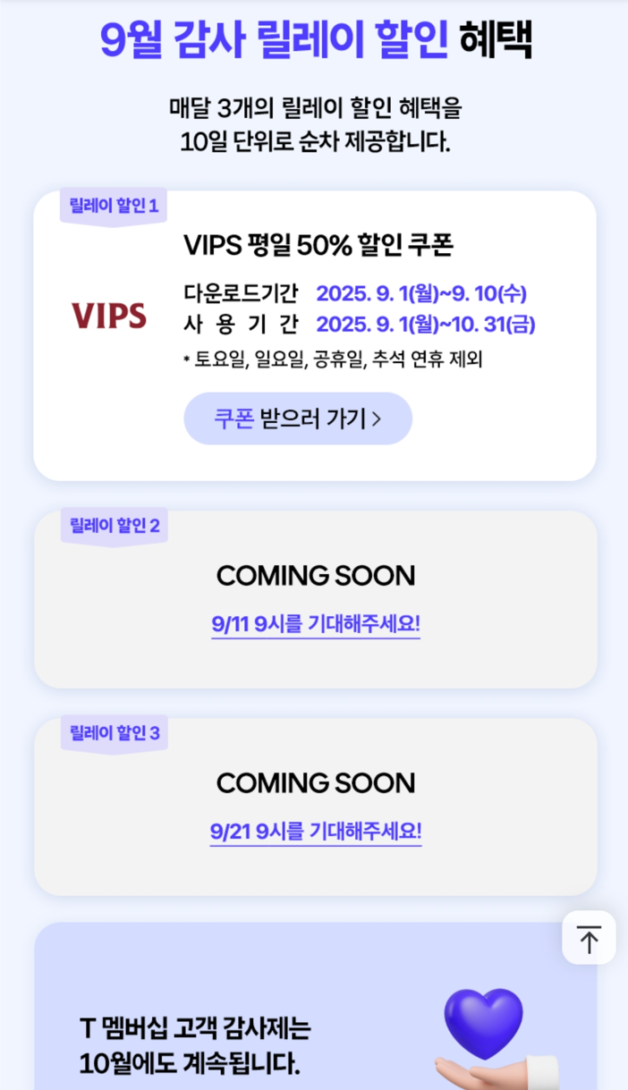 9월 1일 첫 번째 혜택은 VIPS 할인 쿠폰입니다